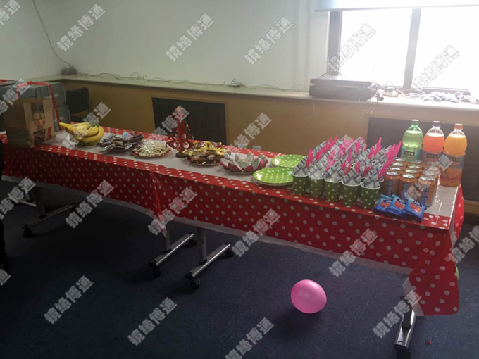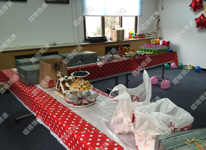 2015年12月25日圣诞节之际,公司相关部门对会议室进行了精心布置,五彩的气球、精致的挂件摆设、琳琅满目的圣诞树,品种繁多的美味食物营造出了浓浓的节日氛围。公司全体员工于午间进行了圣诞趴,同事们倍感节日的快乐与温馨。