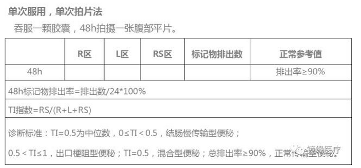 通过以上内容我们可以看出,对于慢性便秘患者,根据罗马Ⅳ做出诊断后,最重要的一步是要对便秘患者进行明确的分型。胃肠传输试验在便秘的分型中起到非常重要的作用。便秘分型方法介绍如下: